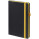 Ежедневник с твердой обложкой, выполнен из материала Waltz, черный АА, дополнен оранжевой резинкой и ляссе.