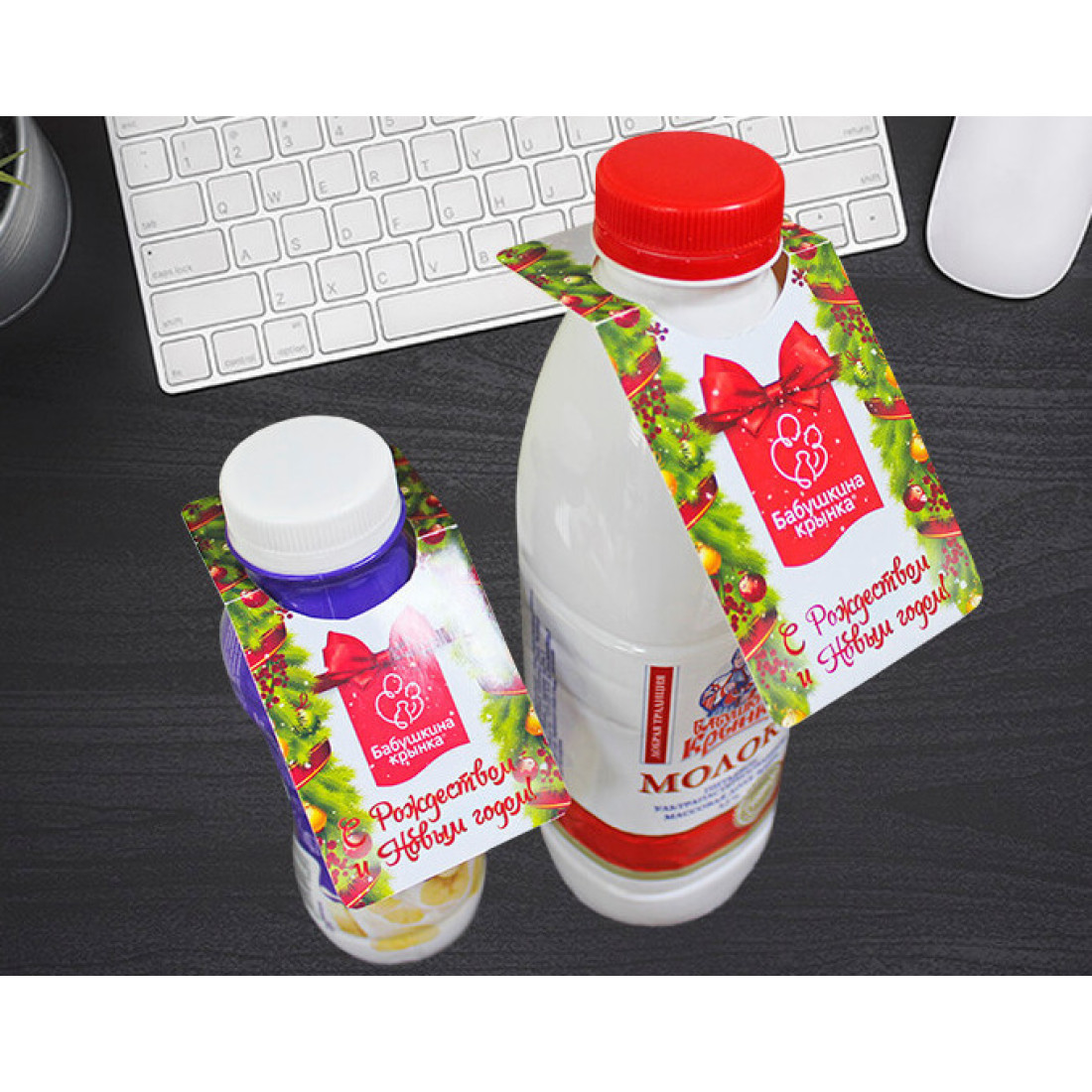 Некхенгеры - это конструкция, которая крепится к горлышку бутылки на резинку или веревочную петлю. Мы можем изготовить хенгер из картона (крепится на горляшко с помощью вырубки или в виде брошюры на веревочной петле) или из самоклеющейся пленки (в виде кольеретки или этикетки-обертки)